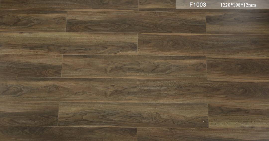 F1003 Surface texture: Smooth Dimension Available: 1220mm * 198mm Thickness: 12mm Utility Class: AC4 Quantity per box: 10 pcs Area/pcs: 0.242m2 / 2.7sqft Area/box: 2.416m2 / 27sqft Related products BrownM8601 Buy product BrownM6802 Buy product BrownF1008 Buy product