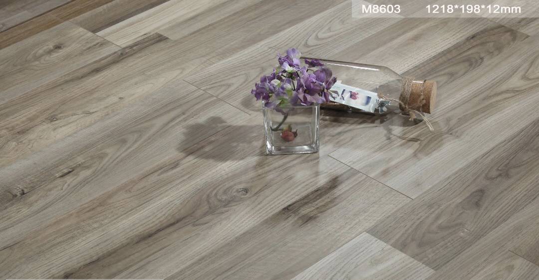 M8603 Surface texture: Smooth Dimension Available: 1218mm * 198mm Thickness: 12mm Utility Class: AC4 Quantity per box: 10 pcs Area/pcs: 0.241m2 / 2.6sqft Area/box: 2.412m2 / 26sqft Related products BrownM8701 Buy product BrownM8201 Buy product BrownM8301 Buy product