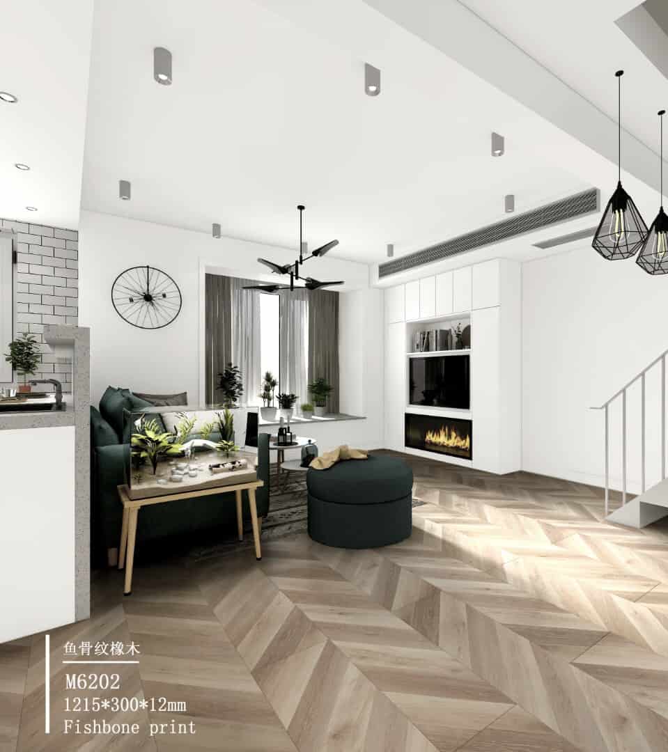 M6202 Surface texture: Smooth Dimension Available: 1215mm * 300mm Thickness: 12mm Utility Class: AC4 Quantity per box: 6 pcs Area/pcs: 0.365m2 / 4sqft Area/box: 2.187m2 / 24sqft Related products HerringboneM6203 Buy product HerringboneM6101 Buy product HerringboneM6201 Buy product
